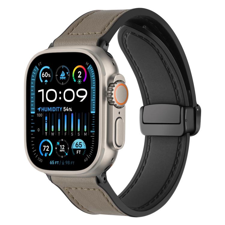 For Apple Watch 42 / 44 / 45 / 46 / 49mm xDfind Crazy Horse Pattern Silicone Skin Magnetic Buckle Watch Band(Taupe)