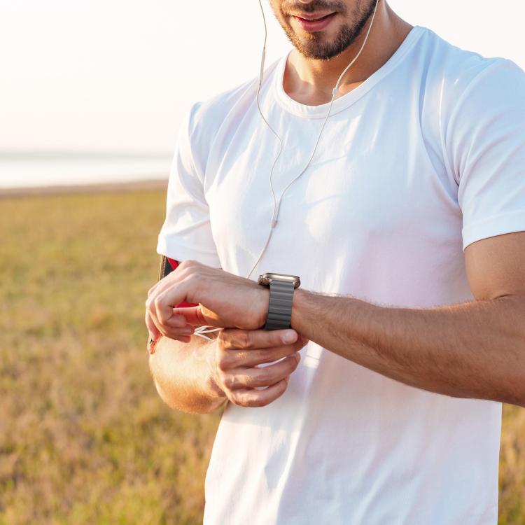 For Apple Watch 42mm / 41mm / 40mm / 38mm DUX DUCIS SD Series Double-Sided Blind Insert Silicone Magnetic Watch Strap(Dark Grey + Light Grey)