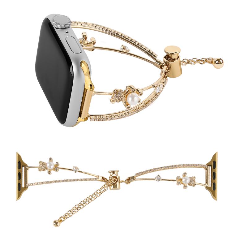 For Apple Watch 46mm / 49mm / 45mm / 44mm Copper-Inlaid Bear Zircon Bracelet Watch Band(Gold)