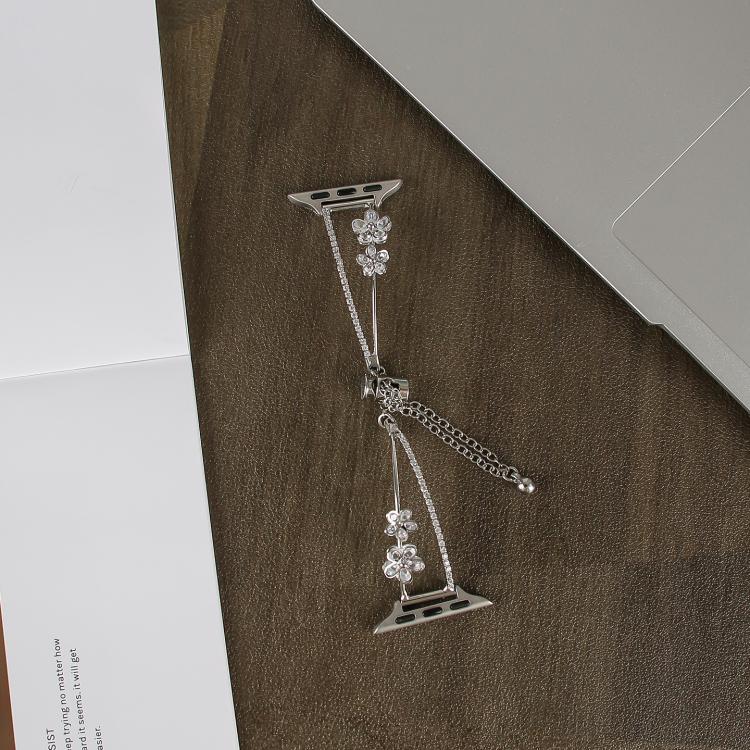For Apple Watch 46mm / 49mm / 45mm / 44mm Copper-Inlaid Zircon 5-petal Flower Bracelet Watch Band(Silver)