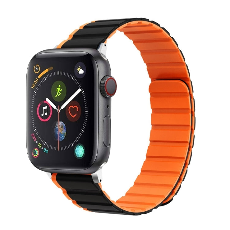 For Apple Watch Series 4 44mm ZGA Two Color Magnetic Silicone Watch Band(Black+Orange)