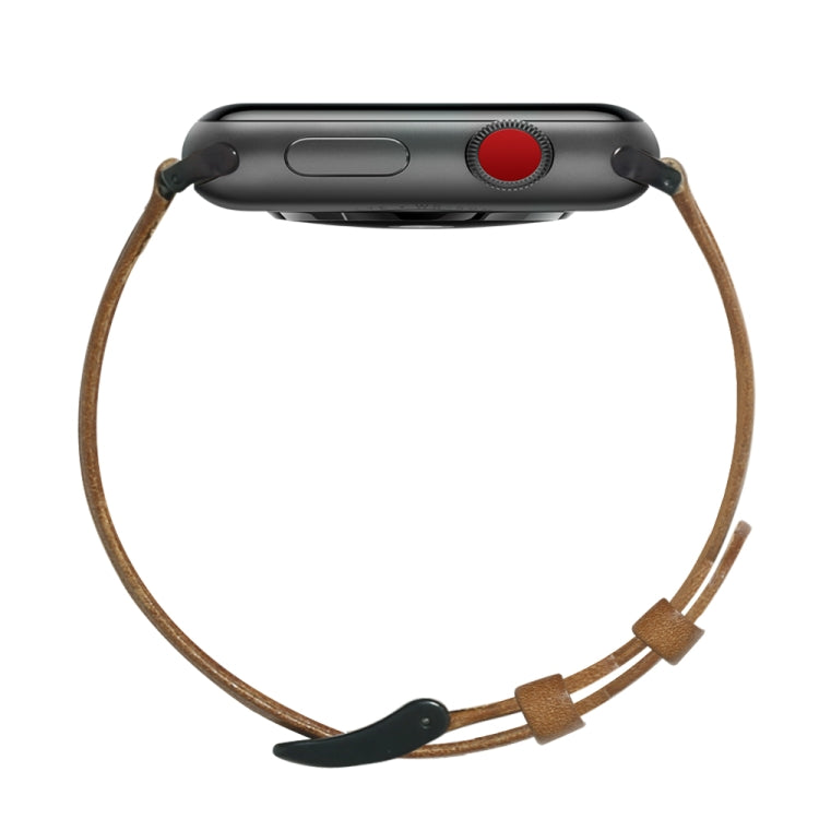 For Apple Watch Series 7 41mm / 6 & SE & 5 & 4 40mm / 3 & 2 & 1 38mm Oil Wax Genuine Leather Strap Watch Band(Yellow Brown)