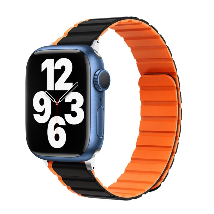 For Apple Watch Series 7 45mm ZGA Two Color Magnetic Silicone Watch Band(Black+Orange)