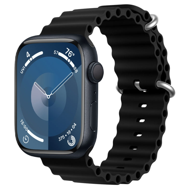 For Apple Watch Series 9 45mm ZGA Ocean Silicone Watch Band(Black)