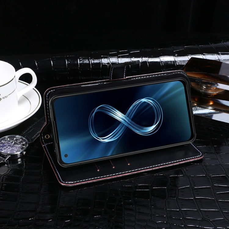 For ASUS Zenfone 8 / ZS590KS idewei Crocodile Texture Horizontal Flip Leather Case with Holder & Card Slots & Wallet(Dark Blue)