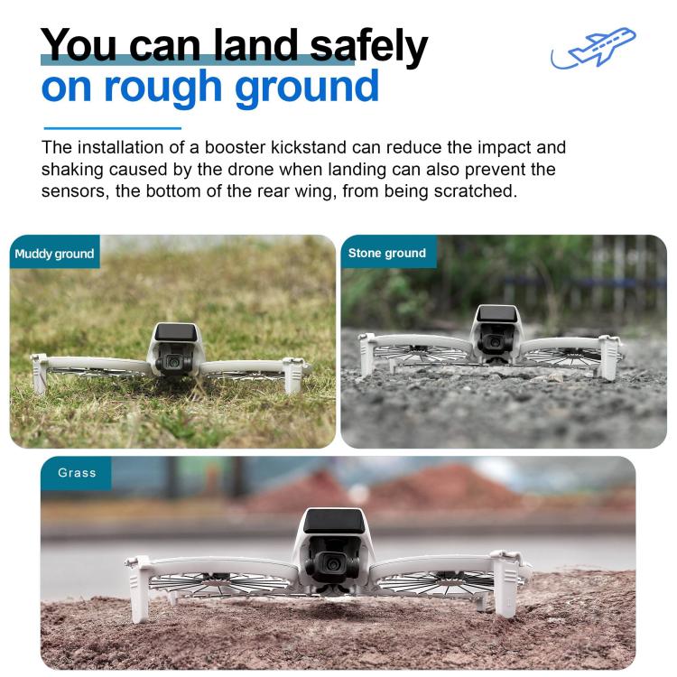 2. Effective Height Increase and Protection: Elevates the drone by 10mm, reducing impact when taking off or landing on uneven surfaces. It helps stabilize landings while protecting the drone body, downward vision sensor, and gimbal from scratches, debris, and moisture damage, enhancing adaptability to various terrains.