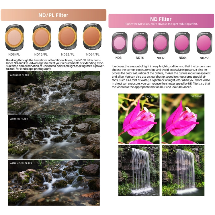 3. ND Filter: You can get more freedom to control aperture and shutter, bring more exposure methods and creative space for photography creation, and effectively prevent overexposure. The number behind ND represents the ability of the ND mirror to block light.
