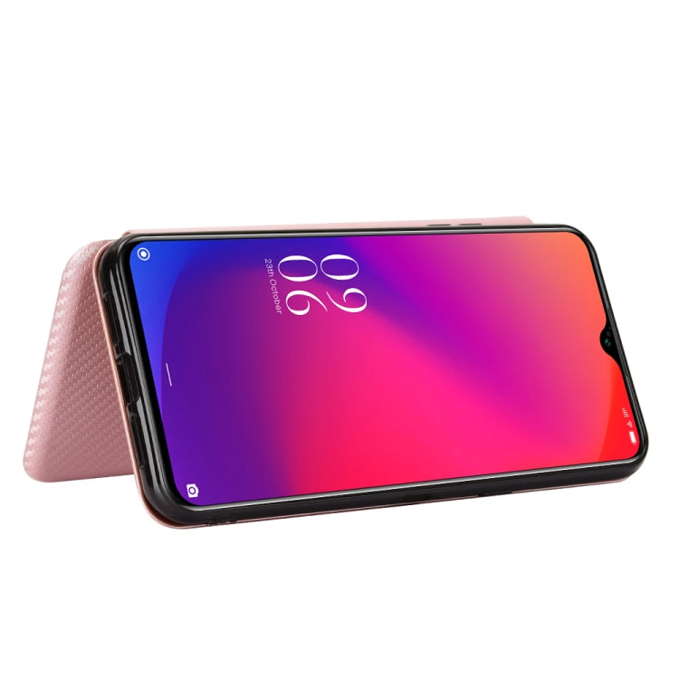 For Doogee X95 Carbon Fiber Texture Horizontal Flip TPU + PC + PU Leather Case with Card Slot & Lanyard(Pink)