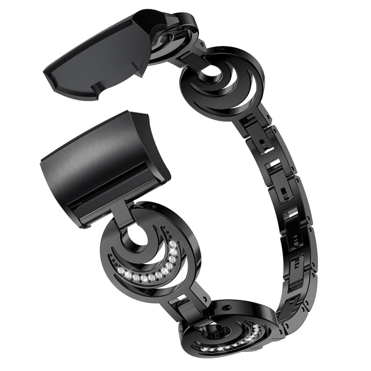 For Fitbit Charge 2 Sun Moon Star Diamond Metal Watch Band(Black)