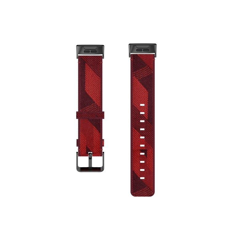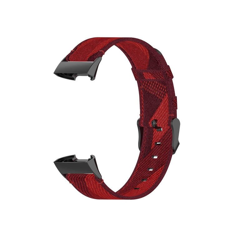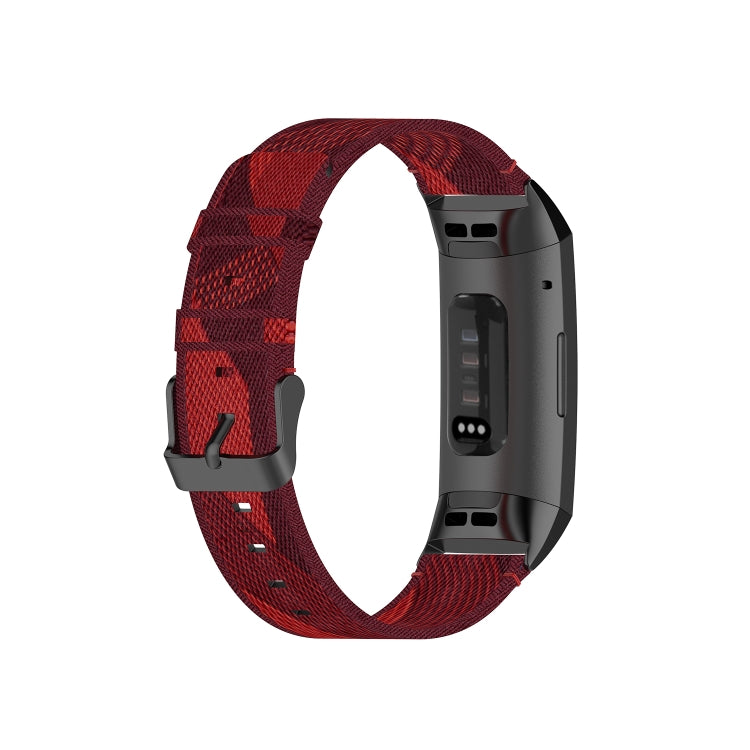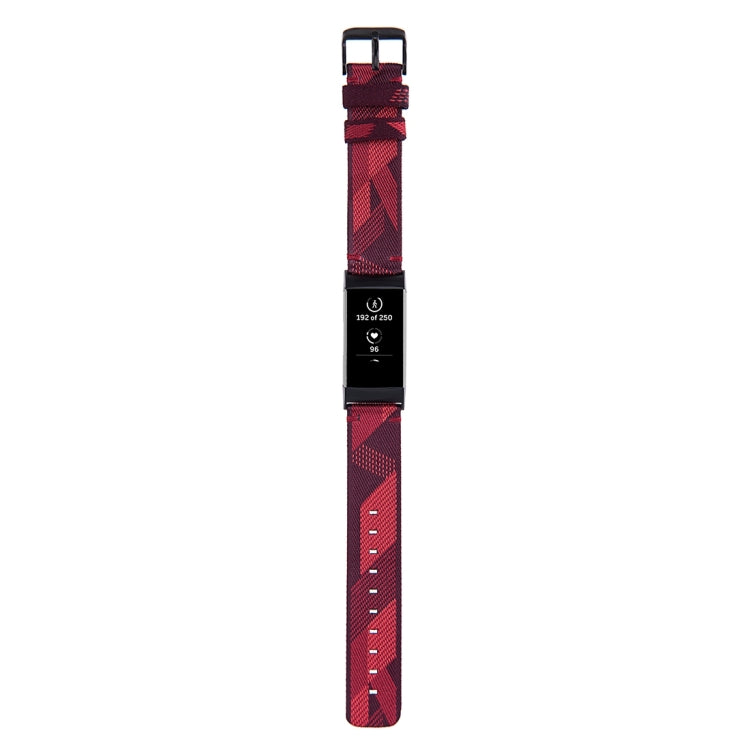 For Fitbit Charge 4 / Charge 3 / Charge 3 SE Stainless Steel Head Grain Nylon Denim Replacement Strap Watchband(Red Stripe)