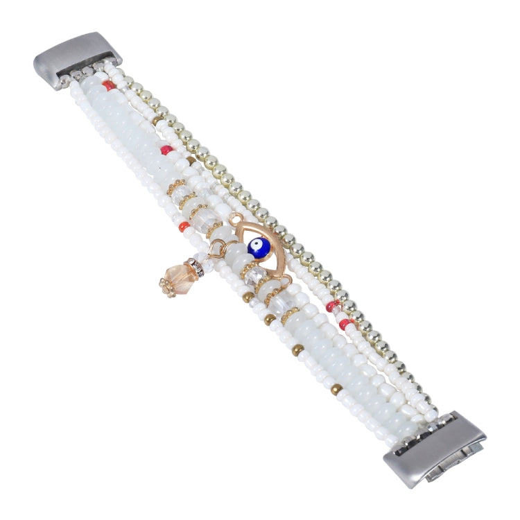 For Fitbit Charge 5 Eye Bead Chain Watch Band(White)