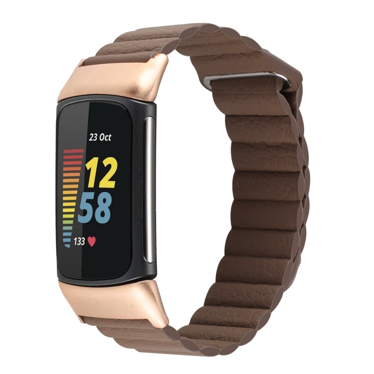 For Fitbit Charge 5 Magnetic Loop Leather Watch Band(Dark Brown)
