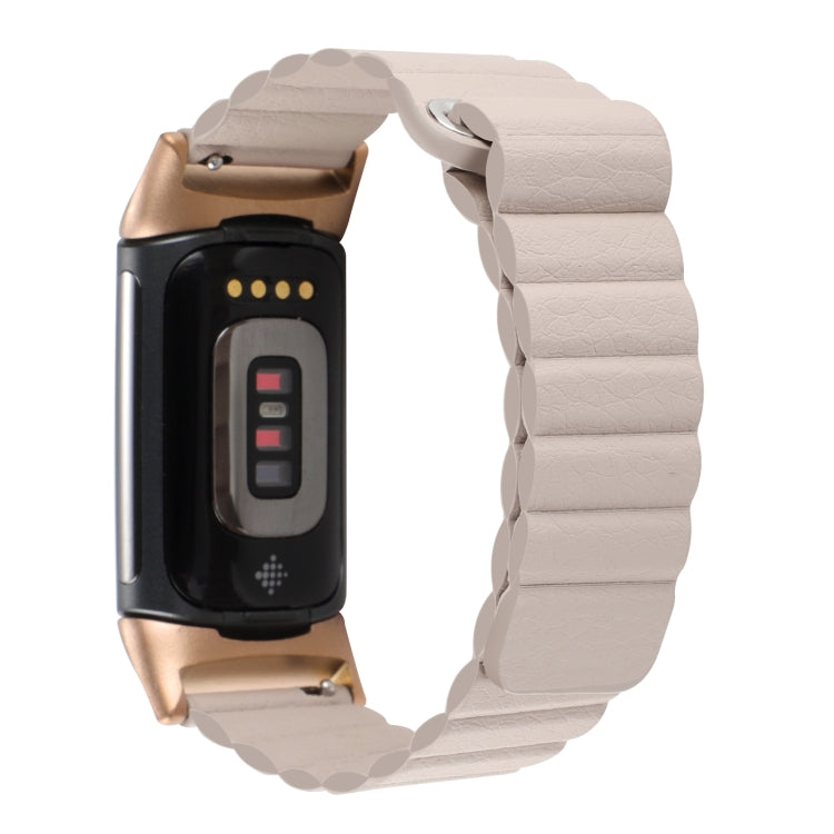For Fitbit Charge 5 Magnetic Loop Leather Watch Band(Khaki)