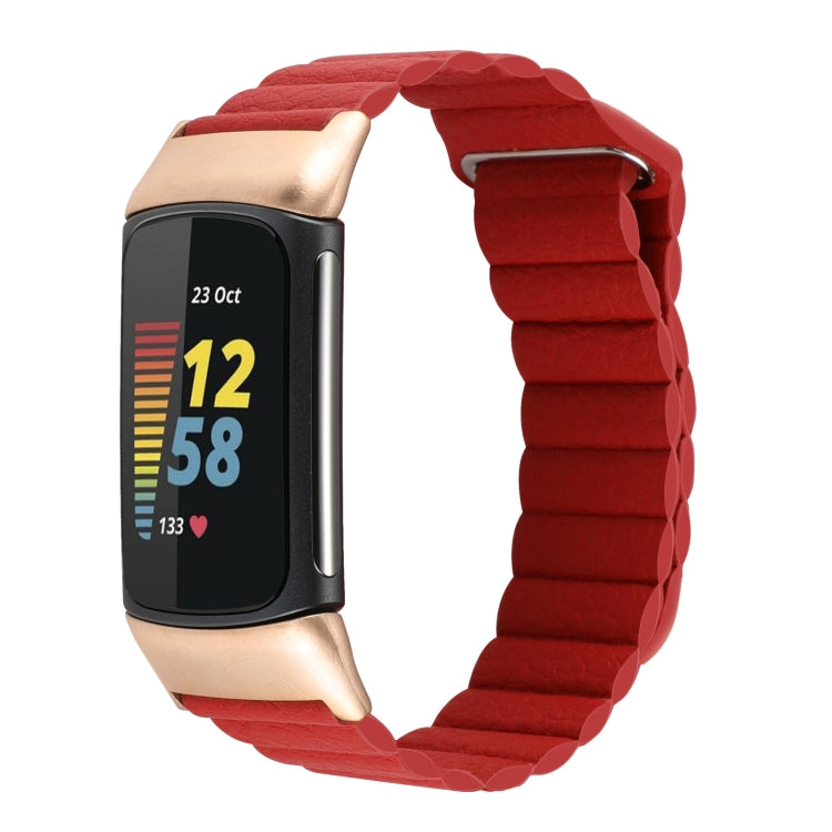 For Fitbit Charge 5 Magnetic Loop Leather Watch Band(Red)