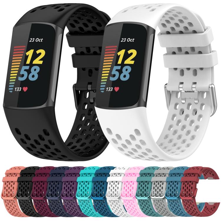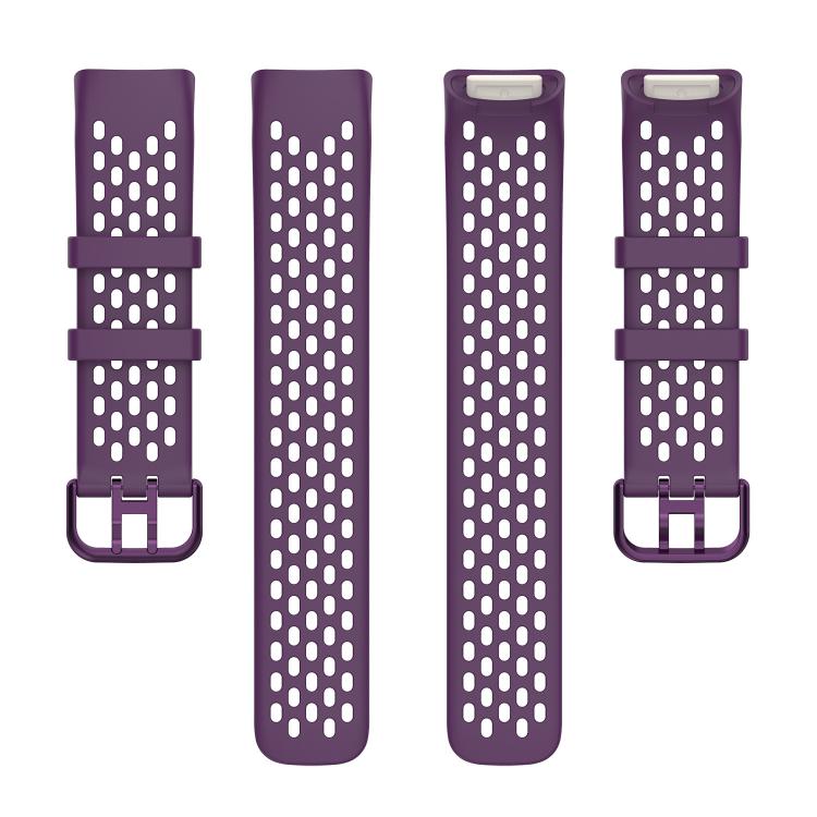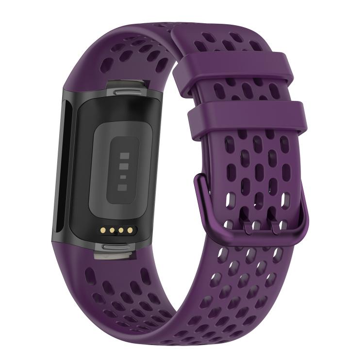 For Fitbit Charge 6 / 5 xDfind Hole Style Breathable Silicone Watch Band(Dark Purple)