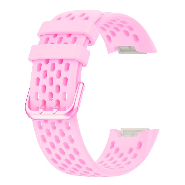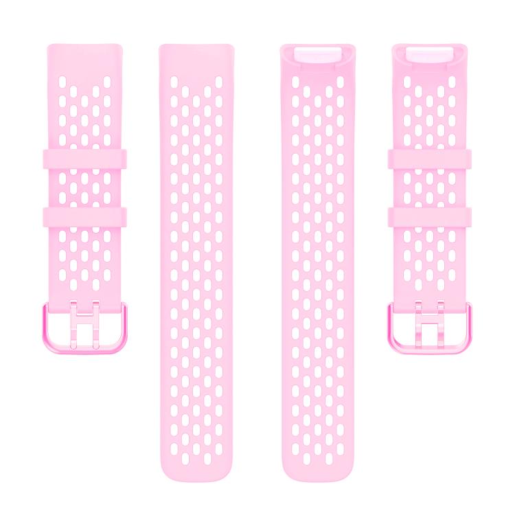 For Fitbit Charge 6 / 5 xDfind Hole Style Breathable Silicone Watch Band(Ice Pink)