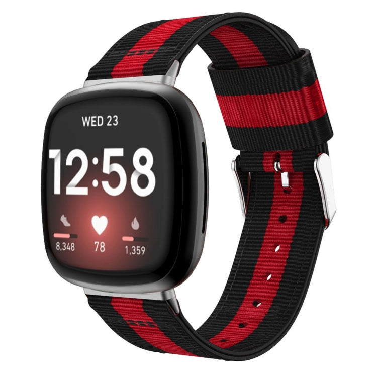 For Fitbit Versa 4 / Sense 2 Universal Stripe Nylon Watch Band(Black Red Black)