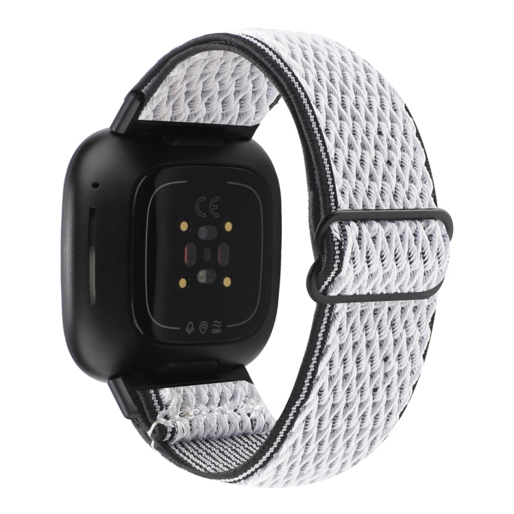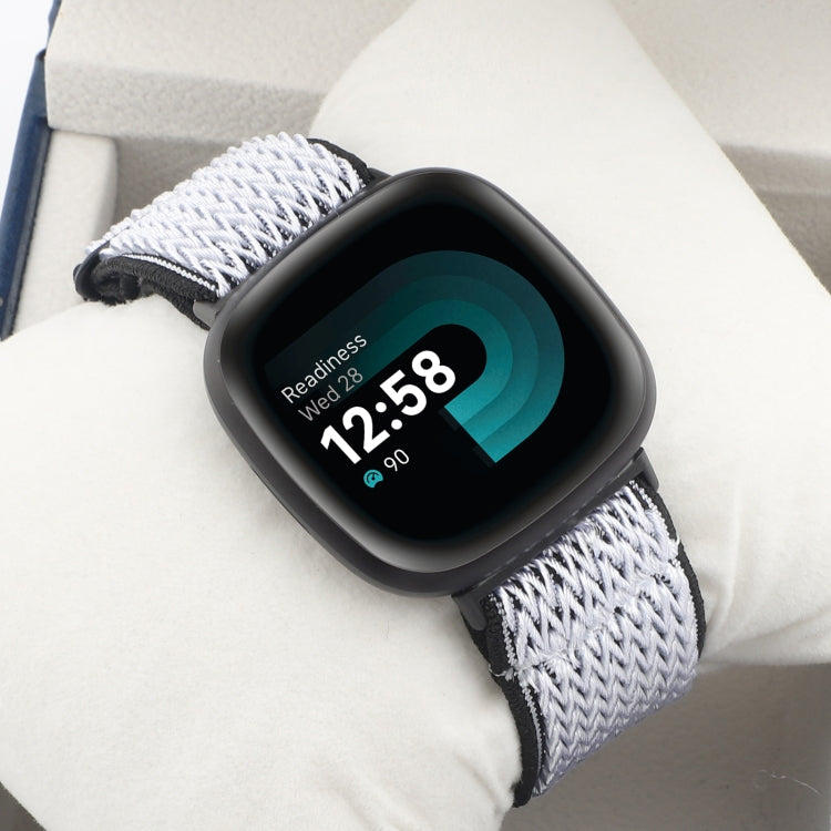For Fitbit Versa 4 / Sense 2 Universal Wave Nylon Watch Band(White Black)