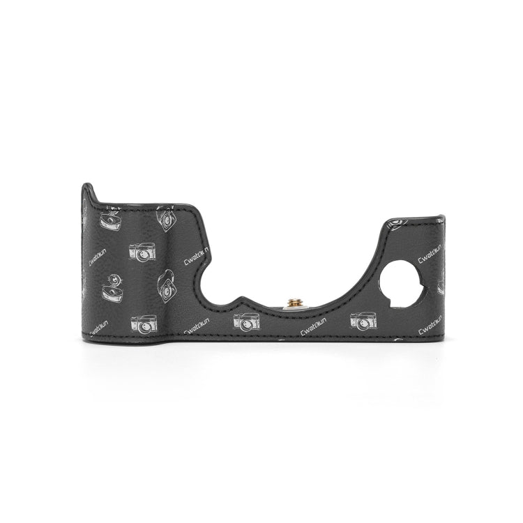 For FUJIFILM X-T5 Cwatcun D161 Vintage Camera Stand Camera Protective Leather Case(Black)