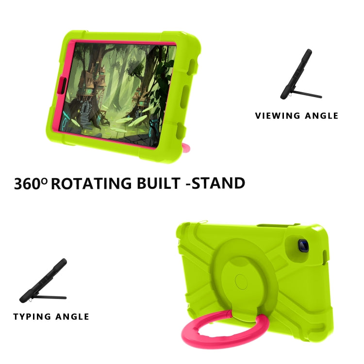 For Galaxy Tab A7 Lite T220/T225 PC + Silicone Shockproof Combination Case with 360 Degree Rotating Holder & Handle(Grass Green+Rose Red)