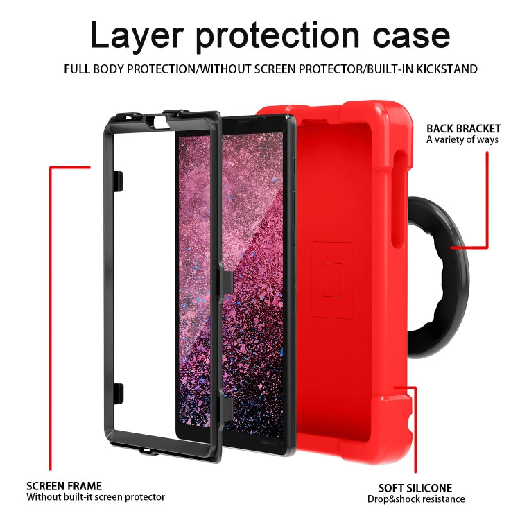 For Galaxy Tab A7 Lite T220/T225 PC + Silicone Shockproof Combination Case with 360 Degree Rotating Holder & Handle(Red+Black)