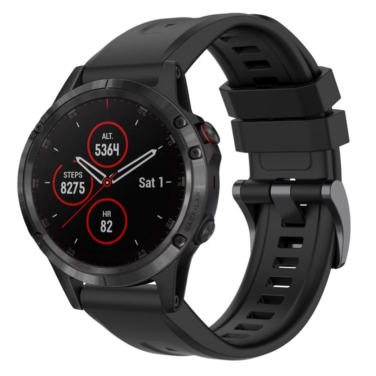 For Garmin Fenix 5 / Fenix 5 Plus Solid Color Black Buckle Silicone Quick Release Watch Band(Black)