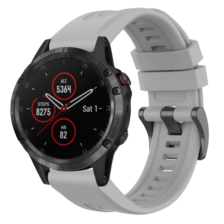 For Garmin Fenix 5 / Fenix 5 Plus Solid Color Black Buckle Silicone Quick Release Watch Band(Gray)