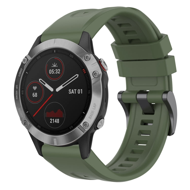 For Garmin Fenix 6 GPS Solid Color Black Buckle Silicone Quick Release Watch Band(Dark Green)