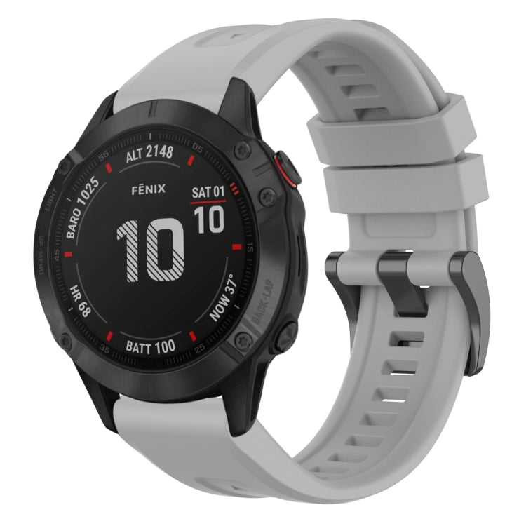 For Garmin Fenix 6 Pro GPS Solid Color Black Buckle Silicone Quick Release Watch Band(Gray)