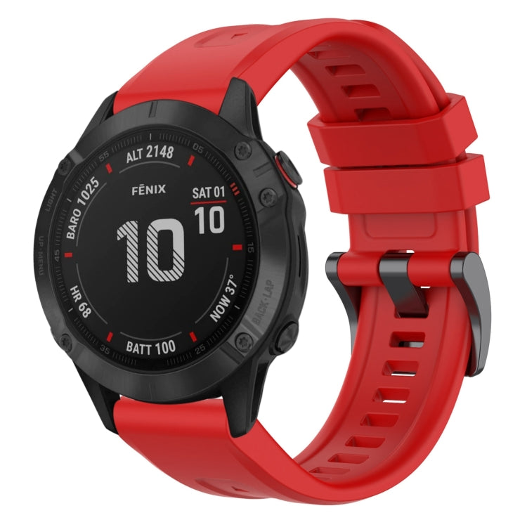 For Garmin Fenix 6 Pro GPS Solid Color Black Buckle Silicone Quick Release Watch Band(Red)