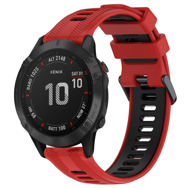 For Garmin Fenix 6 Pro Sports Two-Color Silicone Watch Band(Red+Black)