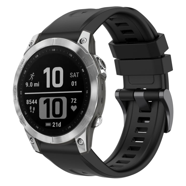 For Garmin Fenix 7 Pro Solid Color Black Buckle Silicone Quick Release Watch Band(Black)