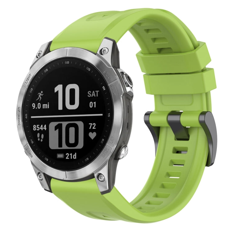 For Garmin Fenix 7 Pro Solid Color Black Buckle Silicone Quick Release Watch Band(Lime green)