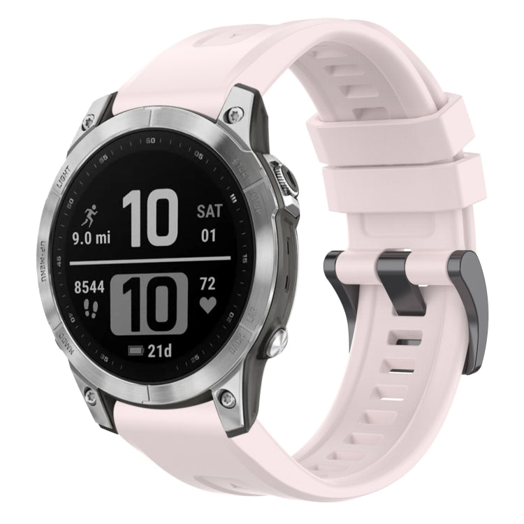 For Garmin Fenix 7 Pro Solid Color Black Buckle Silicone Quick Release Watch Band(Pink)