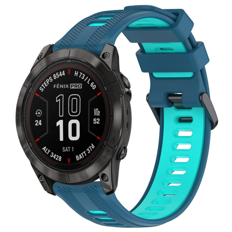 For Garmin Fenix 7 Pro Sports Two-Color Silicone Watch Band(Blue+Teal)