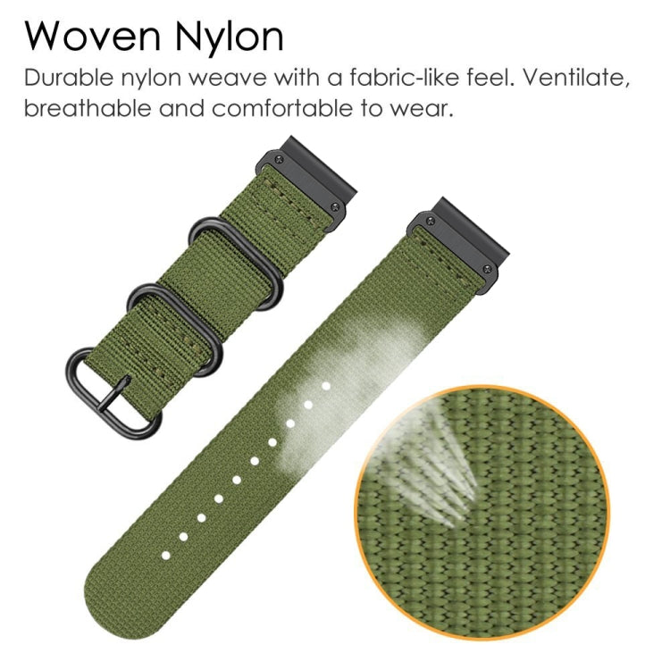 For Garmin Fenix 7 Three-ring Steel Buckle Nylon Watch Band(Army Green)