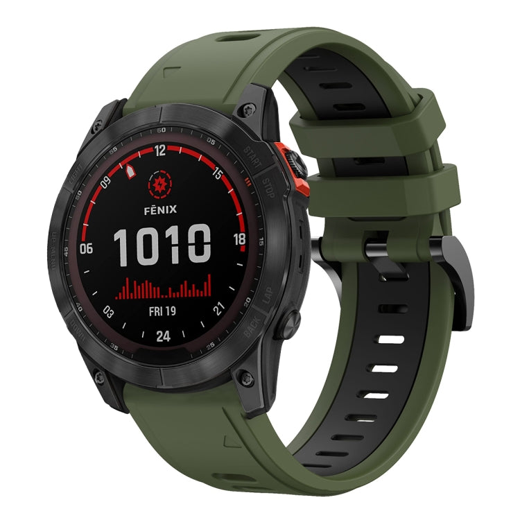 For Garmin Fenix 7X 26mm Two-Color Sports Silicone Watch Band(Army Green + Black)