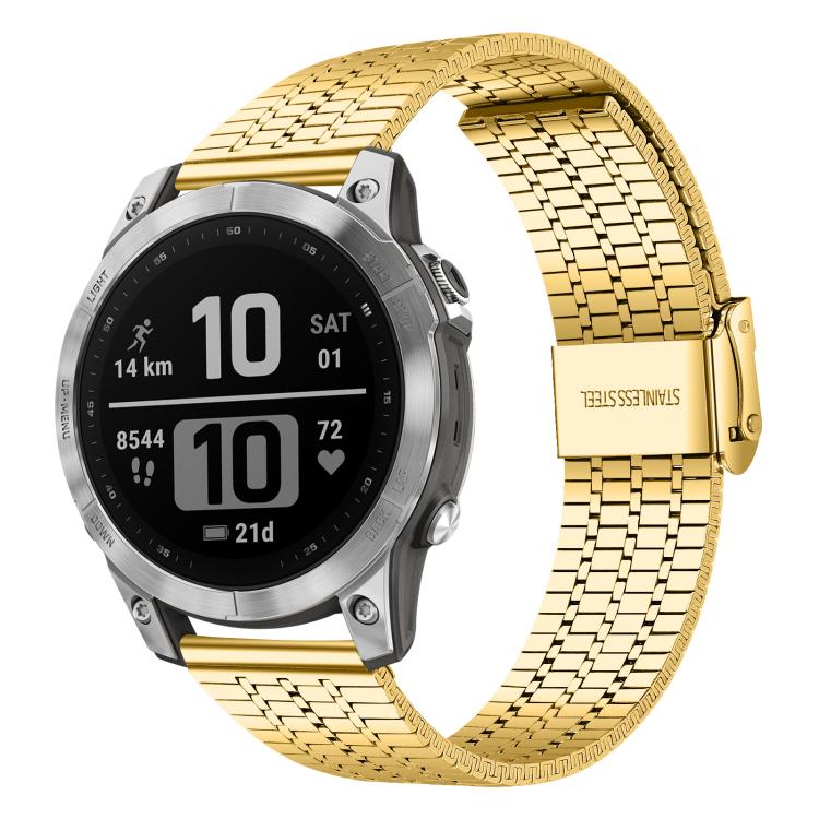 For Garmin Fenix 8 / 7 / 6 / 5 22mm xDfind Seven Beads Buckle Stainless Steel Watch Band(Gold)