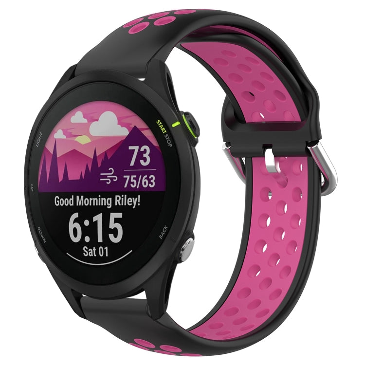 For Garmin Forerunner 255 22mm Perforated Breathable Sports Silicone Watch Band(Black+Rose Red)