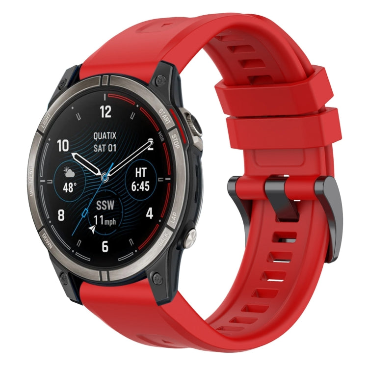 For Garmin Quatix 7 Pro Solid Color Black Buckle Silicone Quick Release Watch Band(Red)