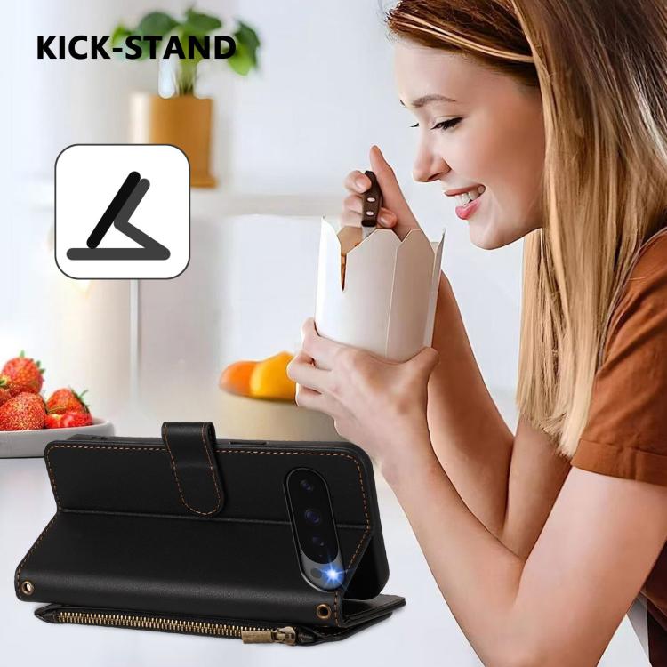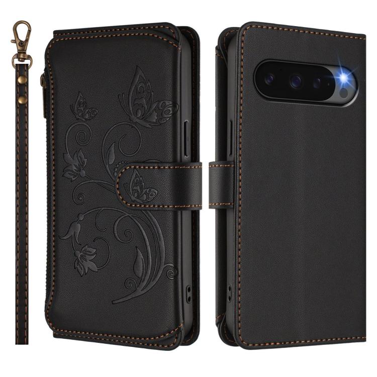 For Google Pixel 10 / 10 Pro / 9 Pro Butterfly Love Flower Multi-card Zipper Wallet Leather Phone Case(Black)
