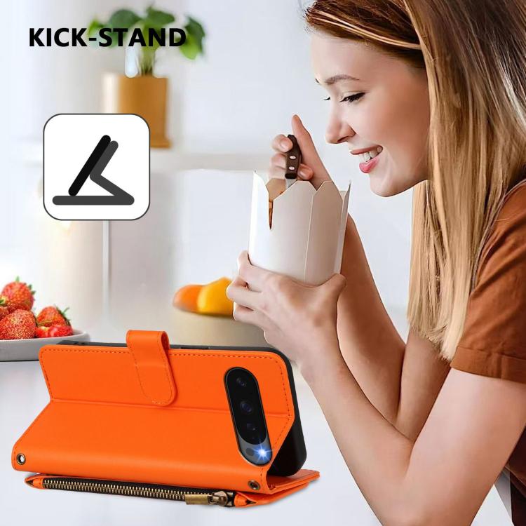 For Google Pixel 10 / 10 Pro / 9 Pro Butterfly Love Flower Multi-card Zipper Wallet Leather Phone Case(Orange)