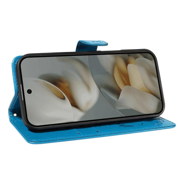 For Google Pixel 10 Pro XL 5G Global Cat and Bee Embossed Flip Leather Phone Case(Blue)
