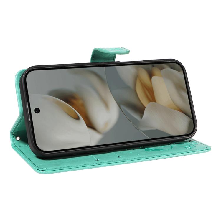 For Google Pixel 10 Pro XL 5G Global Cat and Bee Embossed Flip Leather Phone Case(Green)
