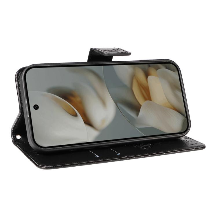 For Google Pixel 10 Pro XL 5G Global Tree & Cat Embossed Pattern Flip Leather Phone Case(Black)