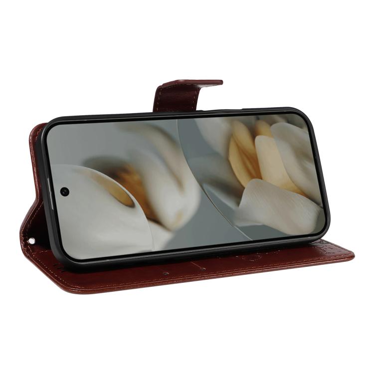 For Google Pixel 10 Pro XL 5G Global Tree & Cat Embossed Pattern Flip Leather Phone Case(Coffee)