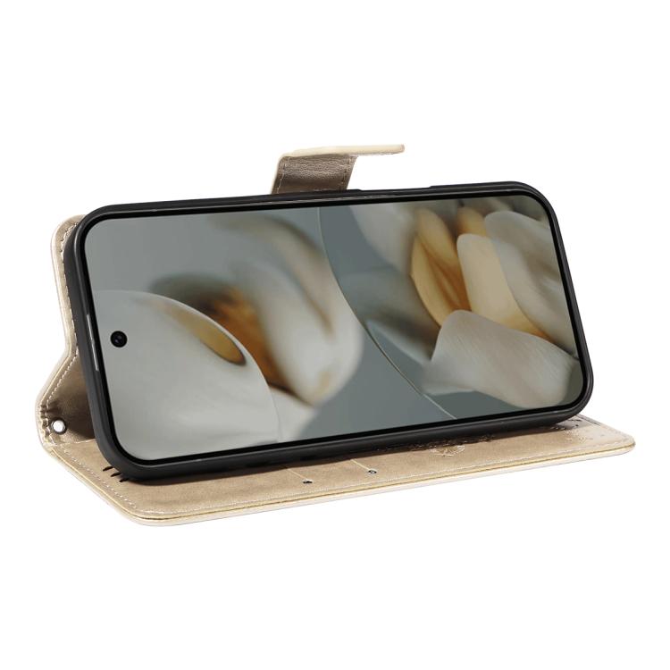 For Google Pixel 10 Pro XL 5G Global Tree & Cat Embossed Pattern Flip Leather Phone Case(Gold)