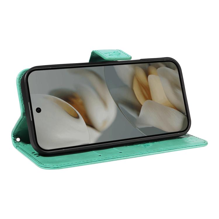 For Google Pixel 10 Pro XL 5G Global Tree & Cat Embossed Pattern Flip Leather Phone Case(Green)