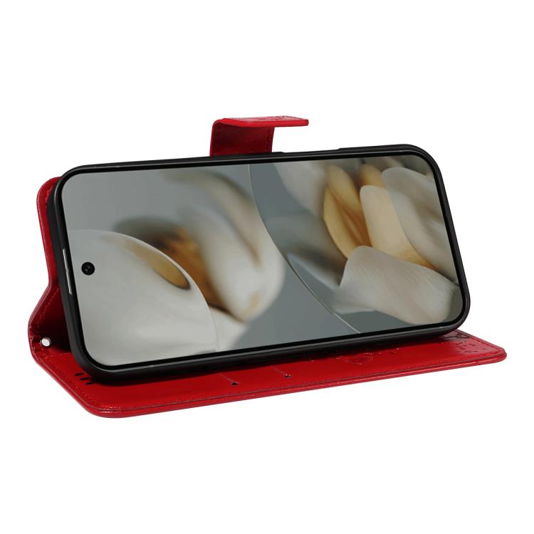For Google Pixel 10 Pro XL 5G Global Tree & Cat Embossed Pattern Flip Leather Phone Case(Red)