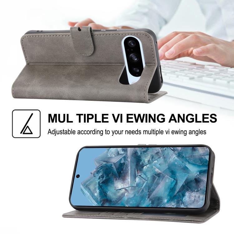 For Google Pixel 10 Pro XL Embossed Happy Cat Pattern Flip Leather Phone Case(Grey)